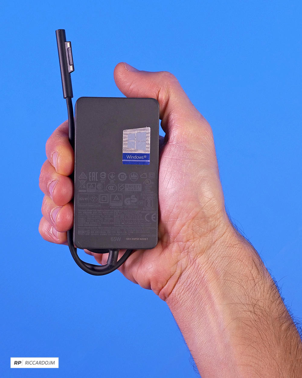 Le buone notizie sono due: l'alimentatore da 65 watt è piccolo, ha il cavo lungo, ha l'attacco magnetico che tanto vi piace (per quanto io non riesca mai a trovare la porta al primo colpo), ha la USB per collegare il cavo dello smartphone. Sono appena tornato dal talk a IAB Forum 2019, ed in effetti questa porta mi ha permesso di viaggiare con un caricabatterie in meno. Non è tutto: riesce sempre a caricare la batteria del portatile perché il consumo massimo su presa è di circa 50 watt, e riesce a farlo più alla svelta del solito perché può usare il Fast Charging, o ricarica rapida se preferite. Quanto è rapida? 60 minuti, ad occhio, bastano per un 70%. Quindi, in termini umani, con mezz'ora di carica potete lavorare bene per circa tre ore.